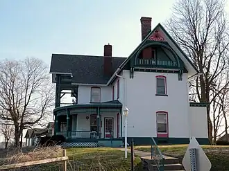 The Jagger–Churchill House is a historic building located in Burlington, Iowa, United States. It was listed on the National Register of Historic Places in 1982.[1] This house is representative of those built by Burlington's wealthier citizens when the city was one of Iowa's major commercial centers in the late 19th and early 20th centuries.[2] Erasmus D. Jaggar, who had the house built, ran a successful linseed oil business. He and his wife Julia raised their five children here. Francis and Catherine W. Churchill bought the house from the Jaggar heirs in 1889. He founded the Churchill Drug Company, which became one of the largest wholesale drug firms in the Midwest by the time of his death in 1896.[2] The house remained in the Churchill family until 1935. The structure does not exhibit any one architectural style, but is a combination of elements of the Gothic Revival, Italianate, Queen Anne, and Eastlake styles.[2]