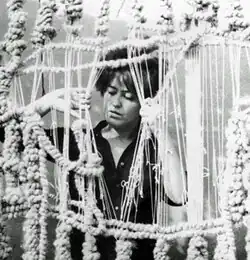 Buić worked on more than 120 projects as a costume and stage designer in various opera, ballet, theatre and film productions at various theatres in Vienna, Zagreb, Osijek, Dubrovnik and Split.[1] In 1965, at the Lausanne Biennial of Textile Art, Buić impressed contemporary art critics with her first textile installation which was immediately bought by the Stedelijk Museum Amsterdam.[2] She continued to exhibit her monumental textile works at art shows and contemporary art museums around the world, becoming known for vast installations made out of textile cords, hemp and wool, and experiments with unusual surface textures and space. From the 1970s, Buić, together with Polish artist Magdalena Abakanowicz, was credited with pioneering innovative textile forms in contemporary arts.