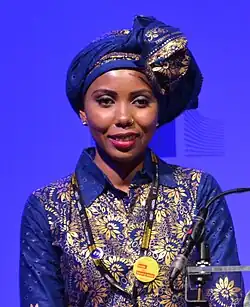 Jaha Dukureh (born 1989 or 1990)[1][2] is a Gambian women's right activist and anti-female genital mutilation campaigner.[1] Dukureh was subjected to female genital mutilation in the Gambia when she was a little more than a week old.[2] She is the founder and executive director of Safe Hands for Girls, an organization working to end FGM,[3] and was the lead campaigner in The Guardian's End FGM Guardian Global Media Campaign.[4] In April 2016, she was named to the 2016 Time 100 list.[5][6] Dukureh was nominated for the Nobel Peace Prize in February 2018,[7] has won the Eleanor Roosevelt Val-Kill Medal,[8] and is a UN Women Goodwill Ambassador for Africa.[9] A feature film about Jaha's life was released by Accidental Pictures and The Guardian. Her memoir, I Will Scream to the World was published by Kensington Books in 2024.