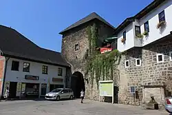 The walled perimeter encloses Jajce from two sides, with the two main city gates, one at each side, the northern main city-gate the "Banja Luka gatehouse", and the southern main city-gate the "Travnik gatehouse".[1]