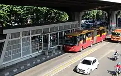 The Cililitan-Tanjung Priok Road (Indonesian: Jalan Raya Cililitan-Tanjung Priok), also known as the Jakarta Bypass (old spelling: Djakarta Bypass) or simply Bypass, is a 27 km (17 mile) long bypass road in Jakarta, Indonesia that connects the Dewi Sartika Road and the Bogor Main Road (Jalan Raya Bogor, which is one of the sections of the Great Post Road/Jalan Raya Pos) in Cililitan, East Jakarta to the Port of Tanjung Priok in North Jakarta. The road is divided into four parts: Jalan Mayjen Sutoyo Road, Jalan D.I. Panjaitan, Jalan Jend. Ahmad Yani Road, and Jalan Laksamana Yos Sudarso. The bypass was inaugurated by the first President of Indonesia, Sukarno on October 21, 1963.[1] One of the Jakarta Inner Ring Road sections is built over the road.