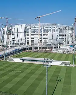 Construction of the stadium was delayed due to land disputes and class-action lawsuits by former squatters whose homes were demolished to make way for the stadium.[4] Construction of the stadium started in September 2019 and completed in April 2022.[5] After numerous delays and preparations, the stadium opened for its grand opening on 24 July 2022.[6]