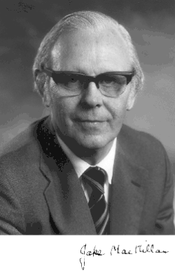 MacMillan gained a place in the top entry form at Lanark Grammar School.[3] Here he became very interested in chemistry and entered the University of Glasgow in 1942, to read chemistry, natural philosophy and mathematics in the first year, and chemistry and botany in the second; he graduated in 1946 with first class honours. He went on to obtain a postgraduate studentship from the Department of Scientific and Industrial Research (DSIR), enabling him to continue as a PhD student in Glasgow. He worked on the structure of colchicine, and was supervised by Dr J D Loudon. The results were published in four papers.[5]