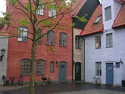 Jakriborg's architectural style has a variety of intricate maze-like streets and passageways.[3] Jakriborg is not connected to traditional styles of other, more northern, parts of Scandinavia, nor with the functionalism that has been dominant in most of Europe for much of the 20th century. Instead, the style is inspired by pre-industrial town architecture found in the coastal region of the southern Baltic and the North Sea between Flanders and Tallinn, of which the old Hansa City of Lübeck is the best known example.[4]