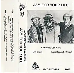 Jam for Your Life! is an album by percussionist Famoudou Don Moye. It was recorded at Sparrow Sound Design and North Shore Studios in Chicago, Illinois. An initial version, with material recorded in September 1985, was released on cassette later that year by AECO Records, a label founded by the Art Ensemble of Chicago. In 1991, AECO reissued the album, with material recorded during 1983–1991, on CD with a different track order and an additional track. On the album, Moye is joined by multi-instrumentalist Ari Brown, vocalist Luba Raashiek, and nearly a dozen additional musicians.[1][2][3][4]