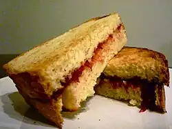 ![]() A toasted strawberry jam sandwich | |