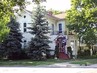 This house was constructed between 1863 and 1864 for James B. Dutton, a lawyer and insurance agent in Lapeer during the town's period of early prosperity and growth. In 1869, the house passed to Oliver and Mary P. Nichols, the owners of a local hardware store. The Nicholses lived in the house until 1892, when it was purchased by the Presbyterian Church, whose sanctuary is located two blocks away. The church used the house as a manse until 1955. After this use ended, the house was converted into apartments.[2]