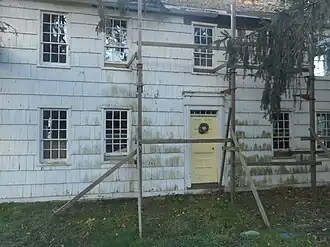 ![]() The James Benjamin Homestead, with scaffolding along the front of the house | |