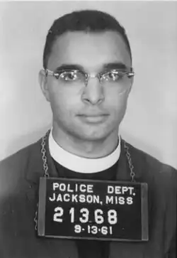 On September 13, 1961, James Breeden was arrested along with 14 other black and white clergymen who had entered a segregated restaurant at a Trailways bus terminal in Jackson, Mississippi, while travelling on the "Prayer Pilgrimage Freedom Ride" from New Orleans to their intended final destination in Detroit.[1][8] Breeden later said that "We knew what would happen when we went in and didn’t leave when ordered to, which is exactly what occurred." Breeden and the other Freedom Riders were charged with "action likely to cause a riot", which allowed police to work around the illegality of local Jim Crow laws. Breeden and the other freedom riders were held in a segregated jail in Jackson for 6 days before the charges against them were dismissed.[2][5][4] Breeden and fellow rider Robert Laughlin Pierson later brought a federal lawsuit against the Jackson chief of police and the presiding judge, charging the two with denying them their civil rights. In 1967 the decision was partially upheld in Pierson v. Ray, which resulted in an eight-year period of civil rights protests led by Breeden in the Boston area.[5]