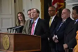 In November 2016, Brochin told The Baltimore Sun that he was considering a run for Baltimore County Executive in 2018.[15] He announced his candidacy on October 19, 2017, seeking to succeed Kevin Kamenetz, who was term limited. During the Democratic primary, he campaigned for increased funding for college and career readiness programs in schools, more treatment options for heroin addicts, and against what he called "development interests" in Baltimore County, prioritizing land preservation, smart redevelopment, and ethics reforms.[16] He also received endorsements from Attorney General Brian Frosh[13] and Comptroller Peter Franchot,[17] and outraised his Democratic opponents.[18]