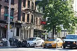 In the mid-1970s, a group of artists including Sari Dienes and Rip Hayman purchased the lease, and in 1977, they re-opened the bar.[8] To avoid having to request LPC approval for a new sign, the new proprietor Rip Hayman painted out part of the letter B in the "Bar" sign, turning it into the word "Ear", after The Ear, a music magazine they published upstairs.[6][3] The Ear Inn became well known among the literary community.[4]