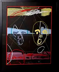 While in New York, Harrison surrounded himself with a group of friends that included James Baldwin and photographers Doug Quackenbush and Larry Clark. He drew inspiration from Jazz, a passion that ignited in him since his beginnings in Detroit, the philosophies of Carl Jung and became more and more consumed by an addiction to drugs and alcohol.[3][4] From the late 1950s throughout the 1970s he was featured in numerous group exhibitions, but it wasn't until the 1980s that he finally gained recognition of his own right. In 1983, he had his first solo exhibition at A Place Apart Gallery in Brooklyn, New York, and in 1987, the LedisFlam Gallery presented his unaided exhibition, "Forty Year Retrospective".[1][5]