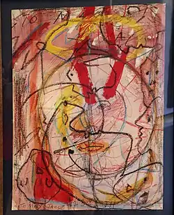 In 1966, Harrison's ongoing battle with drugs and alcohol forced him to be hospitalized. It was after this period that he experienced a Renaissance of sorts which, thus, greatly affected his form of artistic expression.[7] Drawing became the predominant focus for his artwork, or what he himself called "paint-drawing". His work maintained both a graphic and European quality,[3] yet his style was constantly progressing, always striking, vibrant, and somewhat abstract.