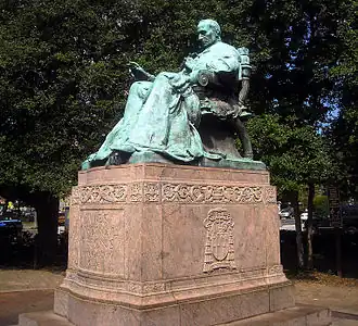The James Cardinal Gibbons Memorial Statue was authorized by Congress and President Calvin Coolidge on April 23, 1928. The piece was commissioned by the Knights of Columbus and cost, at no expense to the United States, $35,998. The piece was unveiled on August 14, 1932.[3][4] John F. Connelly attended the dedication ceremony.[5]