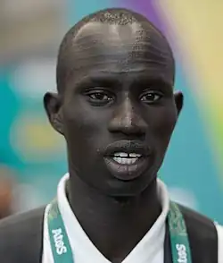 James Nyang Chiengjiek (born March 2, 1992) is a runner originally from South Sudan, but now living and training in Kenya. He was selected by the International Olympic Committee (IOC) to compete for the Refugee Olympic Team (ROT) at the 2016 Summer Olympics.[3] He placed last in his 400 m heat.[4] He also qualified for the 2020 Tokyo Olympics ROT, and placed last in his 800 m heat after tripping due to a fellow competitor's involuntary touch.