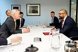 - ^ As Minister of State for Asia and the Middle East. The Lord Ahmad of Wimbledon assumed responsibility for North Africa; Cleverly retained responsibility for North America