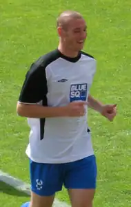 He scored his first goal for Walsall in a 3–2 victory over Wycombe Wanderers in the Trophy on 20 December with a "fine drive", which drew the teams at 1–1.[16][17] Constable scored two goals in seven minutes to help Walsall to a 2–0 victory over Blackpool.[18] His first appearance after signing permanently came in a 3–0 defeat to Bristol City on 2 January 2006.[16] He scored Walsall's second equaliser in a 2–2 draw against Swansea City in the Football League Trophy, which was lost 6–5 on a penalty shoot-out.[19] Chippenham failed in an attempt to re-sign Constable on loan for the remainder of 2005–06 in February 2006.[20] He scored his last goal of 2005–06 with a shot from Dean Keates' cross, which was the opening goal in a 1–1 draw with Port Vale on 15 April 2006.[16][21] He finished the season with 5 goals in 20 appearances for Walsall.[16]