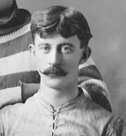 Included in the team is J.E. Duffy, who holds the world's record for the drop kick, he having propelled the ball 168 feet seven and one half inches, at Ann Arbor May 22, 1886. It may be explained that a drop kick is made by letting the ball fall from the hands and kicking it at the very instant it rises. Duffy is a tall, well formed muscular player who gets over the ground like a wraith and fights for every point.[19]