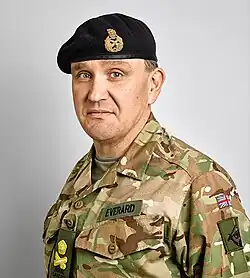 In December 2005 he became Commander of 20th Armoured Brigade[3] in which capacity he was deployed to Basra in Iraq where he made an attempt to target corruption.[3] The brigade left Basra in November 2006[4] and returned to their home of Paderborn in Germany.[5] He was appointed Director Commitments at Land Command in 2007,[6] General Officer Commanding 3rd (UK) Division in 2009[7] and Assistant Chief of the General Staff in April 2011.[8] He went on to be Deputy Chief of the Defence Staff (Military Strategy and Operations) in March 2013[9] and became Commander Land Forces in September 2014 (post renamed Commander Field Army in November 2015).[10] In March 2017 he was appointed as NATO's Deputy Supreme Allied Commander Europe (DSACEUR) and was promoted to the rank of general.[11] Everard served as Patron of the Army LGBT Forum from 2010.[12]
