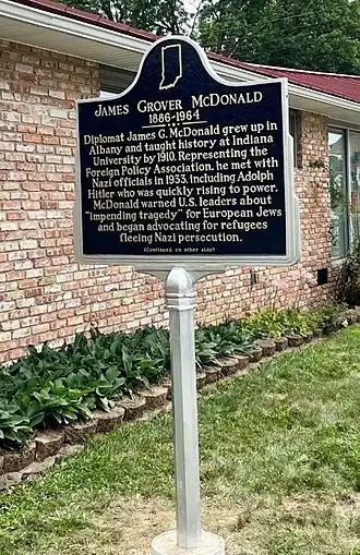 Diplomat James G. McDonald grew up in Albany and taught history at Indiana University by 1910. Representing the Foreign Policy Association, he met with Nazi officials in 1933, including Adolf Hitler who was quickly rising to power. McDonald warned U.S. leaders about “Impending tragedy” for European Jews and began advocating for refugees fleeing Nazi persecution.