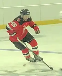 He had a short stint with the University of Manitoba of the CIS in 2012-13 (Canadian Interuniversity Sport), where he was awarded the CIS (West) Most Outstanding Freshman (University of Alberta Hockey Alumni Trophy) and was named to the CIS All-Rookie Team.[4]