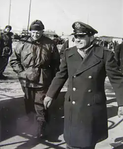 From 1940 until October 1943, he was the Squadron Commander of the 43d Pursuit Squadron serving at Albrook Field in the Panama Canal Zone, where he helped protect the Panama Canal with his P-40 Warhawk. Also, he was Deputy Commander of the 404th Fighter-Bomber Group from November 1943 to October 1944. In March 1944, he went with the 404th to southern England to prepare for the Normandy landings, flying a P-47 Thunderbolt. From October 1944 until after the end of the war, in June 1945, he commanded the 48th Fighter-Bomber Group in Belgium. He flew 92 missions in the Thunderbolt, during which he was credited with one kill: a Fw 190.[2][3]