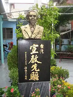 On 16 June 1865, at the urging of missionaries H. L. Mackenzie and Carstairs Douglas, he established the first Presbyterian church in Taiwan, this date now celebrated by the Presbyterian Church in Taiwan as its anniversary.[2] First his mission centred in the then-capital Taiwan Fu (now Tainan City); in 1868 he moved near Cijin (now part of Kaohsiung) where his work, both medical and missionary, became more welcomed. In early 1872 he advised Canadian Presbyterian missionary pioneer George Leslie Mackay to start his work in northern Taiwan, near Tamsui.