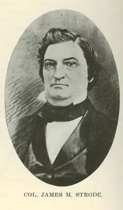 James M. Strode was from the U.S. state of Kentucky but lived much of life in Illinois. During the late 1820s Strode lived in Springfield, Illinois but from 1831 he lived in the city of Galena, Illinois.[2][3]