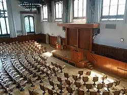 This aspect of his work found popularity among most Presbyterian clergy, who found his arguments useful in their attempts to cope with scientific philosophy.[2] The Presbyterians in America thus could choose between two schools of thought on evolution, both based in Princeton. The Seminary held to Hodge's position until his supporters were ousted in 1929, and the college (Princeton University) became a world class center of the new science of evolutionary biology.[6]