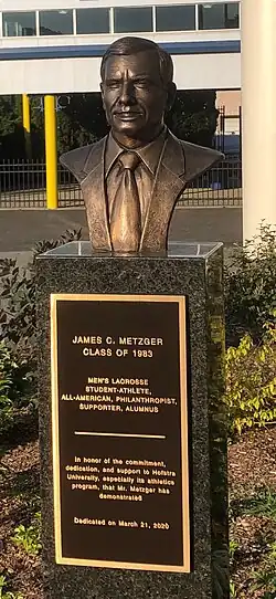 During 2020, Metzger was honored, along with three other individuals, with a bronze bust on stadium grounds.[23] Also honored with busts were Hofstra luminaries James M. Shuart, former president of Hofstra University; Joseph M. Margiotta, former Hofstra football player and Hofstra Pride Club president, who also served in the New York State Assembly; and Howdy Myers, former Hofstra Pride athletic director, football coach and lacrosse coach. Myers also coached football and lacrosse at Johns Hopkins University and is a member of the National Lacrosse Hall of Fame.[24]