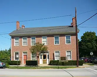 The James Mitchell House is a historic home located at Indiana, Indiana County, Pennsylvania. The front section was built about 1850, and is a 2+1⁄2-story brick building with a gable roof in a vernacular Federal-style. It measures six bays by four bays. It has a 2+1⁄2-story frame rear wing, making for an L-shaped building. The house was used as an inn.[2]