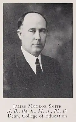 James Monroe Smith (October 9, 1888 – May 26, 1949) was an American educator and academic administrator in Louisiana, best known for an embezzlement scandal that sent him to prison.[1]
