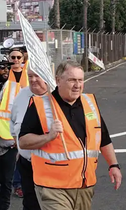 Under his leadership, the Teamsters ended a federal program that allowed Mexican truckers to haul goods beyond the border zone in the United States.[12] The Teamsters strongly opposed a trade deal with Colombia through lobbying and street protests, and were credited with helping to prevent a similar trade deal with Panama.[13][14]