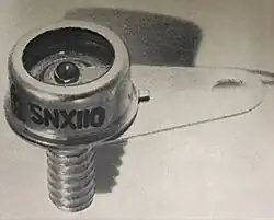 On October 26, 1962, TI announced the first commercial LED product, the SNX-100.[14] It sold for a price of $130 per unit. The SNX-100 employed a pure GaAs crystal to emit a 900 nm light output. It used gold-zinc for the P-type contact and tin alloy for the N-type contact. TI gave Biard and Pittman $1.00 each for their patent.