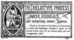The firm inherited The Atlantic Monthly, as did James R. Osgood and Company, the firm created by Osgood and two remaining partners after Fields retired on New Year's Day 1871. In an 1877 advertisement, James R. Osgood and Company are listed as the publishers of the weekly The American Architect and Building News, with the location listed as Winthrop Square (220 Devonshire Street).[4]
