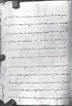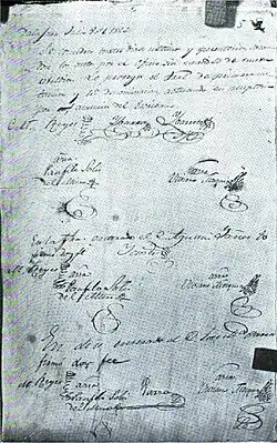 Following the expulsion of the Jesuits from New Spain in 1768, Don Miguel sent a request to Charles III for reconfirmation of his grant.[64][65] The request was granted in 1776, an unusually long delay even accounting for bureaucratic processing and travel times of the day, in the form of a letter reading "I, the King of Spain, gratefully acknowledge your many valuable services in the army of the crown, and approve the grant to you which you have above described."[66]