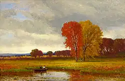 Brevoort made his home in Yonkers, New York, and continued painting into the 1910s, having long since abandoned the Hudson River School style. He helped found the Yonkers Art Association in his final years. Brevoort died at home on December 15, 1918, and was buried at Woodlawn Cemetery in The Bronx.[1][3][4] Today, relative to other Hudson River School artists of his time, the works of James Renwick Brevoort are lesser-known. However, the combination of technical ability and artistry he exhibited at the height of his Hudson River School period have come to be regarded as among the finest examples in that phase of American landscape painting. Two major American museums, the Corcoran Gallery of Art in Washington, DC, and the Los Angeles County Museum of Art,[5] acquired similar seascapes by Brevoort in 2003 and 2004, respectively, for their permanent collections. The Hudson River Museum in Yonkers, New York, owns an extensive collection of Brevoort's paintings and drawings.