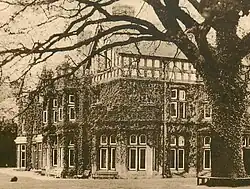 After waiting a year for the tenant to leave, Sawyer began altering and enlarging the house, engaging Messrs Wood and Kendrick of West Bromwich as architects and Thomas Rowbotham of Birmingham as builders.[89] The work transformed the structure of 1840 into a Tudor-style mansion with an entrance hall and picture gallery.[129] One of the internal features of the house was a magnificent oak staircase next to a stained glass window that bore Sawyer's coat of arms and the motto "Cherche et tu trouveras" ("Seek and thou shalt find").[89] The 1911 census records twenty-four rooms.[130]