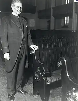 Montgomery served as House Chaplain for 29 years. During that time he participated in many events, including the delivery of the invocation at the special joint session to honor the memory of President Franklin Delano Roosevelt on July 1, 1946.[1] The House had introduced legislation for a joint session with the Senate (H. Con Res. 152) on May 23, 1946, with the Senate's concurrence filed on June 1, 1946.[1] The historic session "included dignitaries from around the world as well as prominent figures in the U.S. government."[1] The rostrum was covered in greens, and Robert Merrill of the Metropolitan Opera performed two solos in Roosevelt's memory.[1]