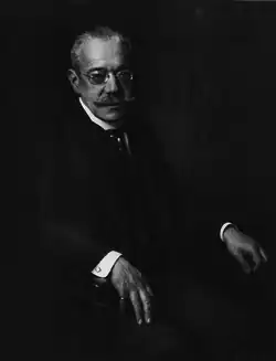 Henri James Simon was born in Berlin, the son of a well-off Jewish cotton merchant. He attended the Berlinisches Gymnasium zum Grauen Kloster and received a six-month traineeship at Bradford, then a centre of textile manufacture, before he became a partner with his father in 1876. Though a reserved man, he played an influential role in the German society, especially by his participation at a regular roundtable with Emperor Wilhelm II. Simon and other invitees like Albert Ballin and Carl Fürstenberg as well as Emil and Walther Rathenau discussed economic life and tried to give the emperor an understanding of a Jewish perspective on social issues. Their close relationship with the erratic ruler was criticized by Zionist contemporaries and they were later mocked as the "Emperor's Jews" (Kaiserjuden) by Chaim Weizmann.[1]