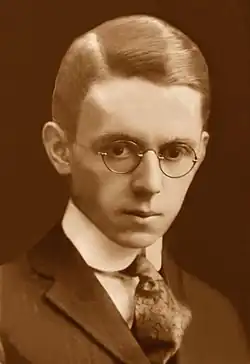 From 1913 to 1918, Thurber attended Ohio State University where he was a member of the Phi Kappa Psi fraternity and editor of the student magazine, the Sundial. It was during this time that he rented the house on 77 Jefferson Avenue,[6] which became Thurber House in 1984. He never graduated from the university because his poor eyesight prevented him from taking a mandatory Reserve Officers' Training Corps (ROTC) course.[7] In 1995 he was posthumously awarded a degree.[8]
