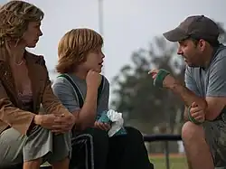 ![]() Vasquez (right) directing Carrie Preston and Lurie Poston on the set of the film Ready? OK! | |