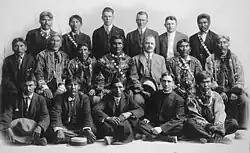 When Wickersham set off for Alaska he was allegedly dodging a government posting in Japan, and he told anyone who asked that he preferred the Eagle post, saying he "yearned for the Yukon, not Yokohama".[3] With the introduction of federal oversight Wickersham was one of three federally appointed judges. The other two were Arthur H. Noyes in Nome and the previously established Melville C. Brown in Juneau. This post made him one of the three most powerful people in Alaska, with no one within 3,000 miles to overrule his decisions or stand in his way. Wickersham was tasked with "cleaning up" the legal system after the Nome Gold Conspiracy which involved prominent Republican National Committee member Alexander McKenzie, and Judge Noyes.[4] His start into Alaskan official law involved litigation of that reflected the Alaskan frontier spirit. "Chief Charley, head of the Charley River band of the Tena Indians, was the first litigant to appeal to the new court officials for justice."[3] According to court records, someone from upriver had stolen his dog, considered a very serious offense at the time. After being given the run around, Chief Charley reached Wickersham and consulted the highest court in the land. Wickersham appointed a deputy to retrieve the stolen animal and waited with the chief for his return, chatting about everyday problems.[3] This incident helped frame Wickersham's reputation as a "man of action."