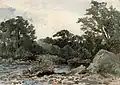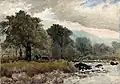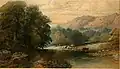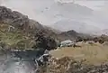 He was born in a family of a warehouseman and began his artistic career as an apprentice to Manchester engraver Joseph Heyes, soon turning to painting. In 1858 he moved to Llanrwst, where he would paint local landscapes in watercolours.[1] With the possible exception of a trip to Switzerland and Italy in about 1864 and a Northern journey in the late 1860s, he remained in North Wales for the rest of his life.[2] Upon meeting Francis William Topham in Wales, Whittaker was encouraged to join the Society of Painters in Watercolours, becoming an associate in 1862, and a member in 1864.[1] He died in 1876 by drowning in River Llugwy, where he fell trying to collect his painting gear.[1][2] Whittaker was married to Sarah nee Heyes (daughter of Joseph Heyes), widowing her and leaving 4 children who outlived him.[1]