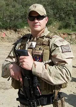 Seeking to further his skills with firearms, Franks joined the Navy. Initially he trained as an Operations Specialist and later applied to and was accepted in the Navy SEAL's BUD/S program. He was unable to complete BUD/S for medical reasons. Franks finished the Navy Expeditionary Combat Skills and Practical Weapons courses and Anti-Terrorism Force Protection/Deadly Force Training, which is required by all Navy personnel. He continued to work as an Operations Specialist (RADAR Operator) and Navy Rescue Swimmer (a collateral duty, not to be confused with Navy Special Warfare Rescue Swimmers) on six overseas deployments including tours in Afghanistan in 2009, 2010 and 2011. While in Afghanistan Franks was assigned to a Counter-IED task force.[3]