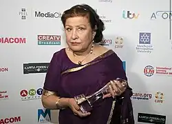 She continued to work extensively on radio in English, Urdu, Hindi and Punjabi as well as for the German service of the BBC. Years later she acted in Tribunal, a ZDF television serial in German, with leading European actors. She joined the Afro-Asian Committee of Equity and continued to work in film and television.[1] Roles for Asian actors were scarce during her early career, but she was given parts in series such as Crossroads (1964); Within These Walls (1976); The Next Man (1976); Z-Cars (1976โ1977); Target (1977); Mind Your Language (1977โ79); Play for Today (1977, 1978); Empire Road (1979); Angels (1981); Minder (1982); The Jewel in the Crown (1984); The Bill (1984); Albion Market (1985); Chance in a Million (1986); Madame Sousatzka (1988); Great Balls of Fire! (1989); Brookside (1989) playing Manju Batra and Pie in the Sky (1994).