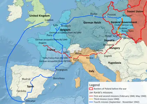 - ^ a b Jan Karski (5 May 2011). Story of a Secret State: My Report to the World: My Report to the World. Penguin Books Limited. pp. 407ff. ISBN 978-0-14-196844-5.