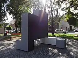 Kubíček ultimately returned to his primary medium, painting, which he continued to develop and improve. His objects thus constitute a closed collection. Kubíček said, "Most objects remain sketches on paper, but they deserve placement in architecture. One could then retrospectively show at least some of my works from years past. They would disclose their spatial form and convey vital geometric and constructivist thoughts and values."[12] In 2016 one of Kubíček's designs for a large object was realized by architect Zdeněk Fránek and installed as a Jan Kubíček memorial at a public park in his birthplace city of Kolín, Husově náměstí, opposite the city's Jan Hus memorial.[13][14][15]