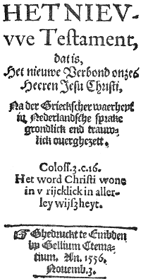 His translation of the New Testament is important for Dutch literary history as it is the first complete translation of any Bible part into Dutch, and as it borrows significantly from the eastern Low Saxon dialects of Dutch, it is also one of the first literary documents from that part of the Low Countries. His attempt to translate the Greek text as literally as possible and highbrow choice of vocabulary, however, prevented widespread acceptance of the translation.
