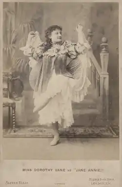 The critics generally condemned the opera, calling the authors to task for a boring story and criticising Ford for his highly derivative score.[3] The Stage wrote that, "Dramatically, Jane Annie is simply a sketch of schoolgirl caprice and persistent waywardness". The paper lamented that the opera was funnier to read than to see on stage.[4] The Times had a more favourable view of the piece.[5] The cast and crew were praised by some critics for their efforts at working such unworthy parts. "However hard [Moore] worked, she remained thoroughly embarrassed by the whole thing. As curtain-calls were being taken, she refused to come out of her dressing-room, though pit and gallery shouted for her for five minutes; and when at length the piece was taken on tour, she absolutely refused to go with it."[3]